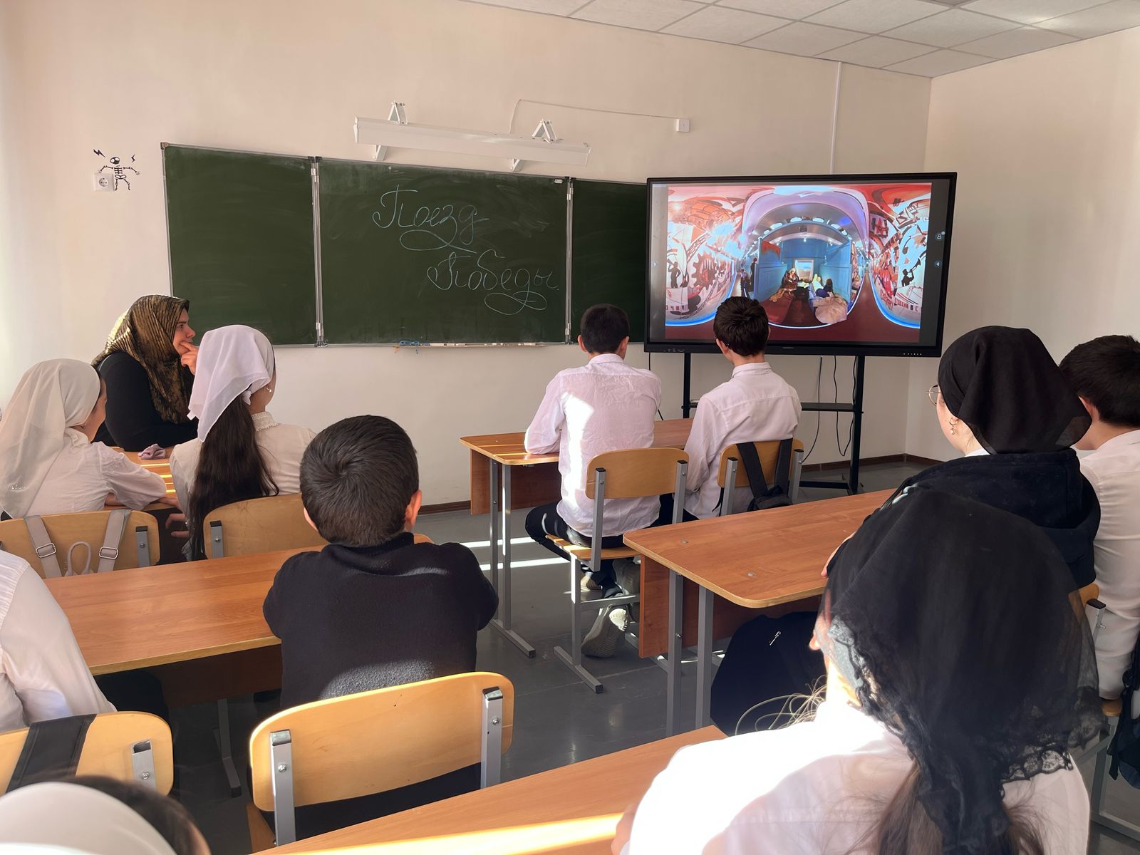 В нашей школе прошел единый урок с демонстрацией виртуального тура по экспозиции "Поезд Победы". Мероприятие посвящено 80-летию со дня Победы. #поездпобеды